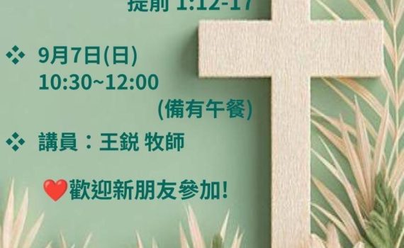 9月15日(日)的崇拜時間, 本教會將舉辦福音主日。 題目: […]